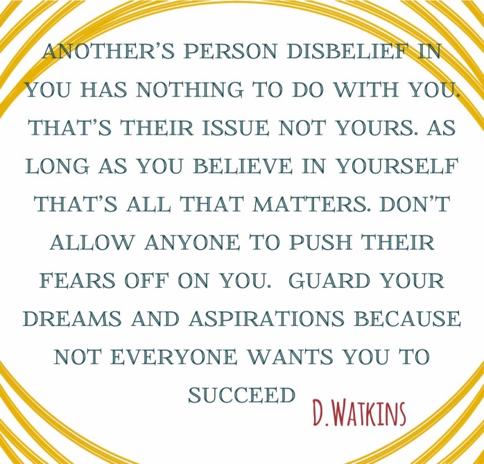 Be a firm believer when it comes to your dreams and aspirations. Having a support system is great, however not everyone is given that luxury. Do not let the negativity and lack of support change your vision. As long as you believe in yourself then that’s all that matters.
